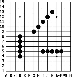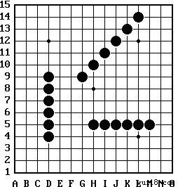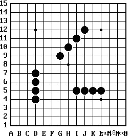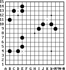 黑方在指定开局的同时要给出本局盘面黑5时所需的打点数量,此后无论对局者谁执黑棋,都需要在落第五手时按照要求的打点数量,在盘面上的空白交叉点上放置相应数量且位置不同形的黑子,白方只能在这些黑子中留下一个黑子作为黑5。
